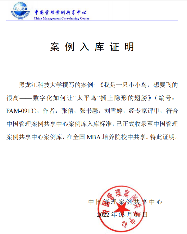 近日,管理学院MBA教育中心选送的张倩教授及其团队撰写的案例:《我是一只小小鸟,想要飞的很高——数字化如何让“太平鸟”插上隐形的翅膀》和《删繁就简三秋树,标新立异二月花——光峰科技股权激励创新能否续写往日辉煌》,正式被中国管理案例共享中心案例库成功收录,是华体(中国)首次入选中国管理案例共享中心案例库的案例,之后会在全国MBA培养院校中共享使用。