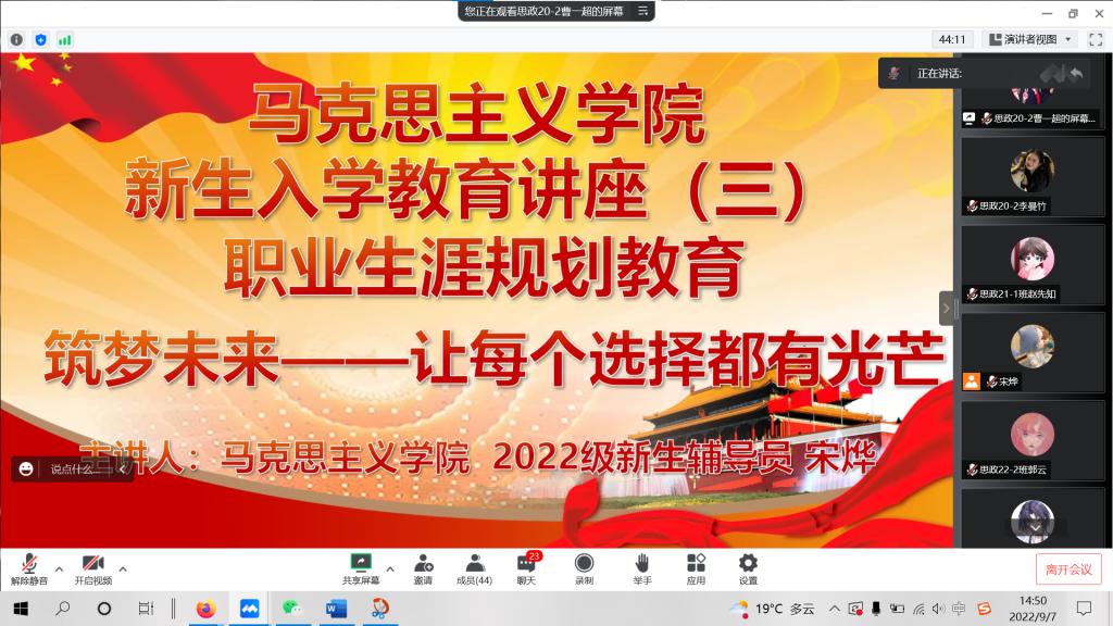 为帮助新生尽快融入大学生活,根据《华体官网网页版2022级新生入学教育方案》文件安排,结合学院学生工作特色,注重入学教育实效,创新形式,马克思主义学院组织开展一系列教育活动,帮助新生系好大学生涯的第一粒扣子,稳步启航。