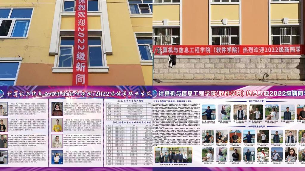 为稳步落实迎新部署的相关要求,营造浓郁的迎新氛围。学院悉心准备、细心布置,为每一位新生准备了寓意着“紫气东来”的爱心大礼包,将口罩、一卡通、辅导员联络卡等报到材料归纳整理,切实做好服务保障工作;学院精心设计了凝练学院特色文化的门贴、床贴,实现宿舍床位实名制,提升了宿舍管理的效能。学院设计制作迎新展板及优秀毕业生风采,具体地展示了学院的基本情况,促使新生更加详细了解学校具体情况;学院在宿舍区、迎新区拉起迎新条幅,进一步营造热情温馨的入学氛围。