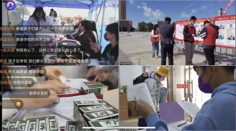 镜头里一个个学生干部为新生办理各种入学手续的忙碌身影、志愿者们为同学们搬运行李的身影温暖人心,家长们在直播公屏上发出了连连赞叹。直播间里热情高涨,互动频繁,“学院有心啦,让家长放心多了”“形式新颖,感谢学院”......直播间传递出的温暖与热情、美丽的校园风光、领导及老师们的耐心解答、学长学姐们的热情服务,无数温馨精彩的瞬间都被直播镜头一一记录,为外国语学院的开学新征程注入新动能。