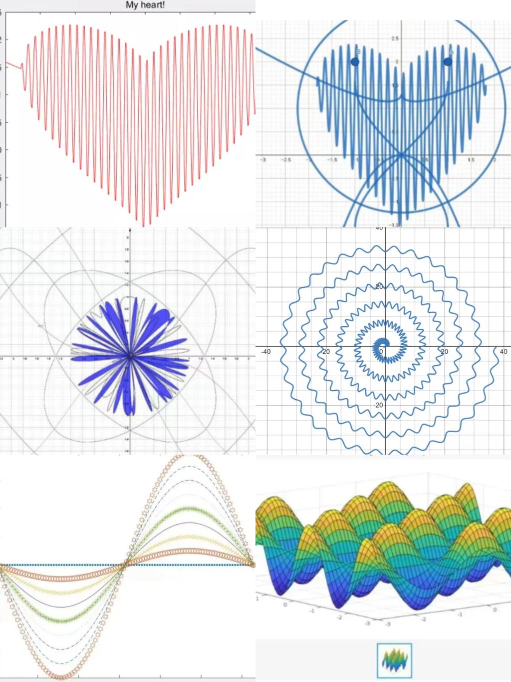 学院立足于数学专业特色,积极探索和创新美育活动形式。数学知识中蕴含着许多美的因素,无论在公式、定理还是结论中,我们到处可以感触到数学的美。为了更好地让学生们感悟数学的美,开展“笔尖浪漫,数学之美”函数绘制活动。学生们主要运用数学知识,通过Word、MATLAB等软件绘制函数图像,培养和发展了学生的数学美感,促进思维的发展,形成积极的情感态度以及数学价值观。